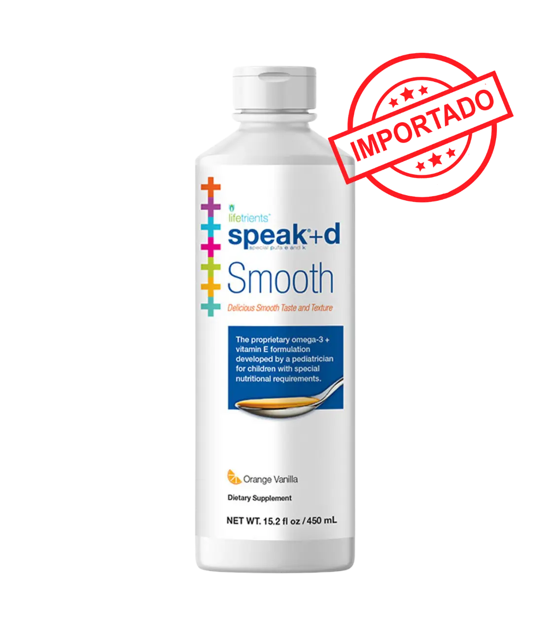 A formulação de Speak+d Smooth inclui sete nutrientes em porções e proporções precisas para crianças com necessidades nutricionais especiais. Cada porção de Speak+d Smooth contém ômega-3 concentrado e ultrapurificado (725 mg EPA, 275 mg DHA), além de quantidades enriquecidas de duas formas de vitamina E.